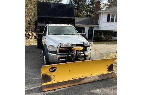 2015 RAM 5500 dump w/landscape body. Standard fold down tailgate, barn doors, & side door. Has a removable bolted steel roof. Asphalt to roof 11’…12’ dump body. 6.7-liter Cummins diesel with 90,200 Miles. 20k GVW. Two bucket seats with fold down console. Dump body has rust, not too bad. Truck looks and runs very well! Ready to work. Truck comes with 9’ Fisher HD plow with fish stick control. Plow has new hoses, new truck plugs. Very good condition & ready to work! Truck hauls 20+ yards of chips & chipper.