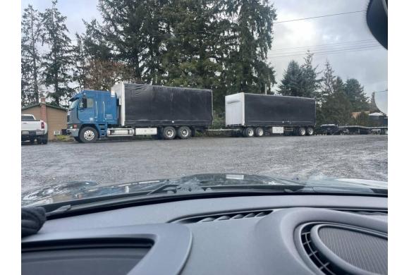 FOR SALE: 2001 Freightliner Argosy Truck & Trailer – Hay Curtain Conestoga Flatbed