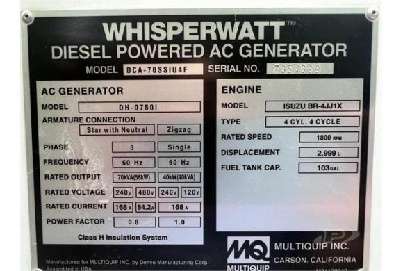 This 2018 Multiquip Whisperwatt DCA70SSIU4F Generator is ready to get to work for you. It is field ready and eager to help you start generating revenue right away. If you are someone who appreciates quality equipment at a great price than you owe it to yourself to check out this 2018 Multiquip Whisperwatt DCA70SSIU4F Generator. Don't miss out on this amazing opportunity to gain industry success because this Multiquip Generator is priced to sell. Call today for more information on how you can put this industrious 2018 Multiquip Whisperwatt DCA70SSIU4F Generator to work for you!!!
